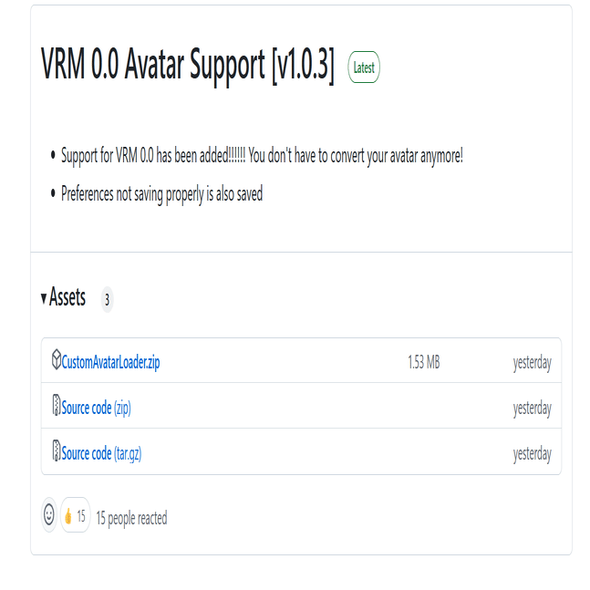 Releases(リリース) セクション( https://github.com/YusufOzmen01/desktopmate-custom-avatar-loader/releases )を開き、最新のリリースを探します。