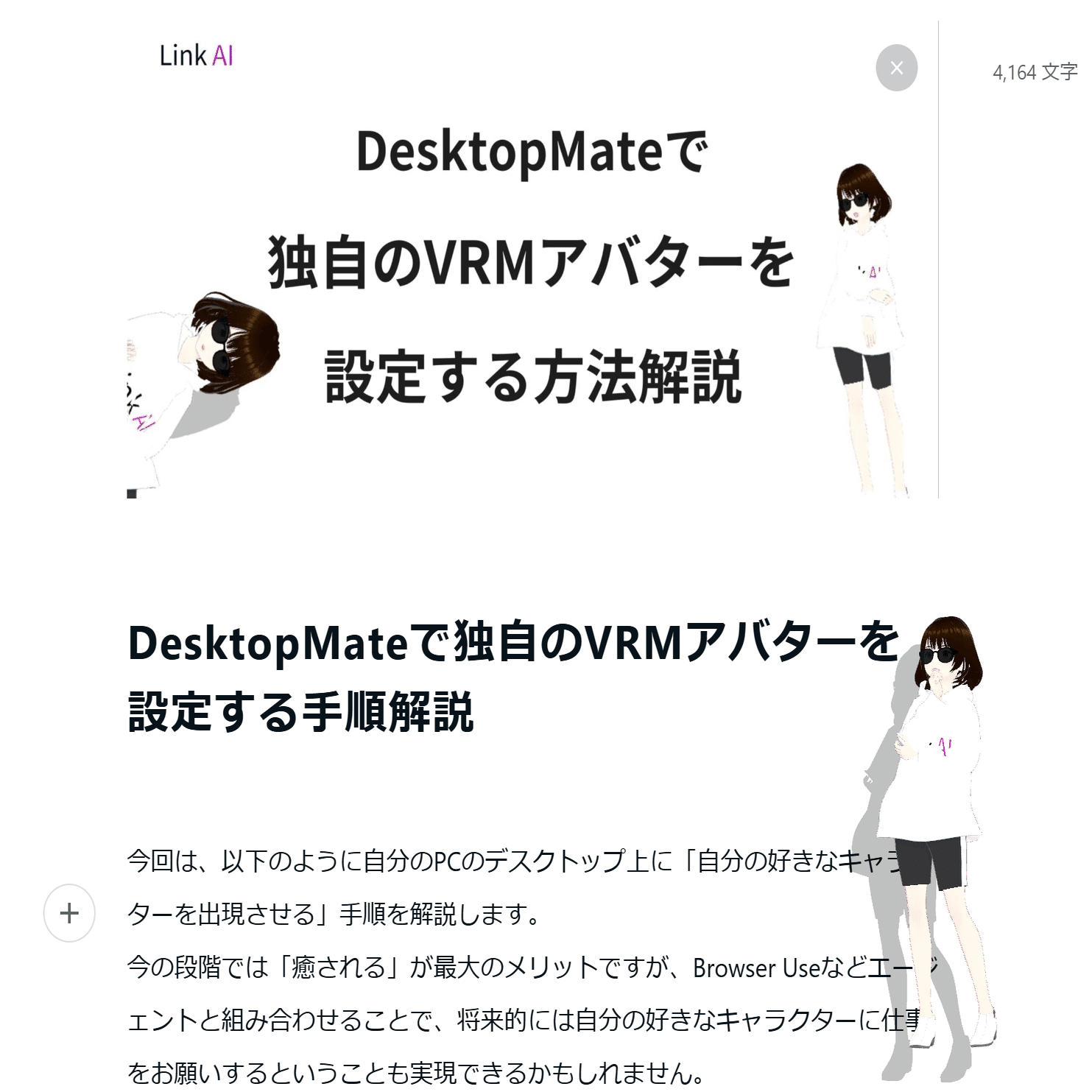 以下では、DesktopMate というアプリに、独自の VRM アバターを表示できるようにするための設定手順を、初心者の方でも分かりやすいように解説します。
