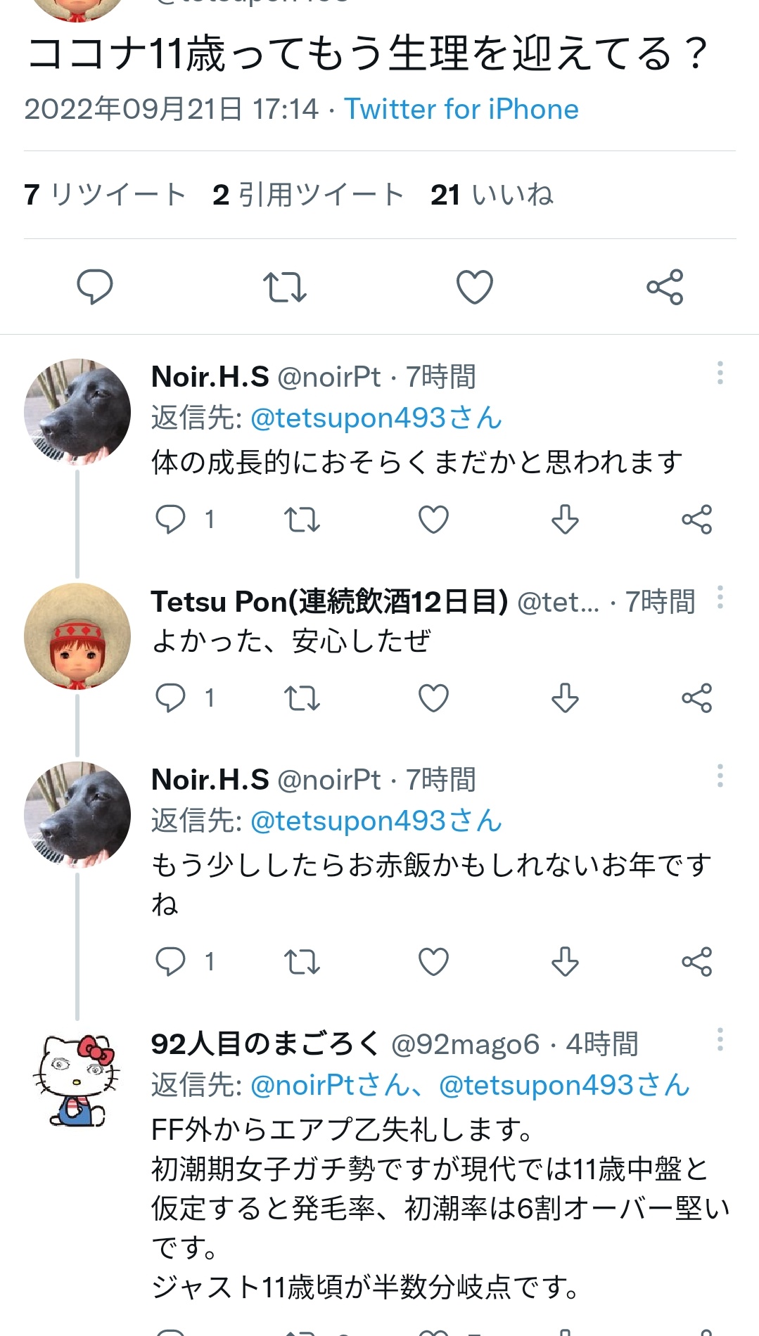 🤓「ココナ11歳ってもう生理を迎えてる?」