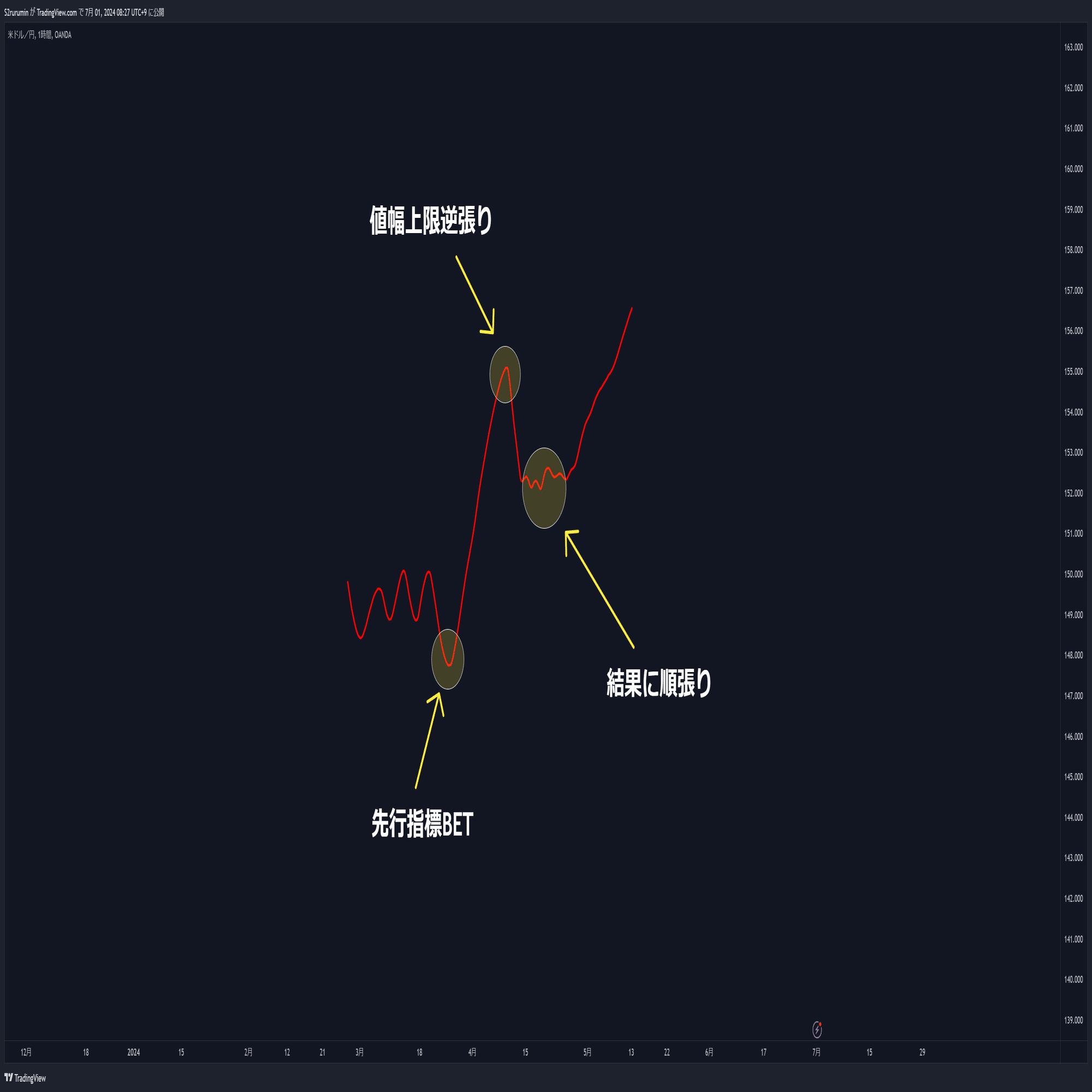 ただ最近は円が舐められすぎてて下げフェーズでは下値が固くなっています。(下で拾いたい人が多い)