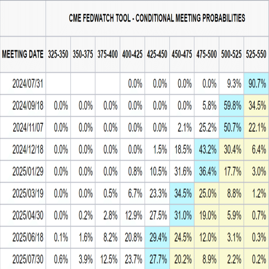 また先行指標ではないもののFed WatchでFF金利先物の織り込み度を確認できるので大きく傾いていれば基本はそっち方向の政策金利になります。