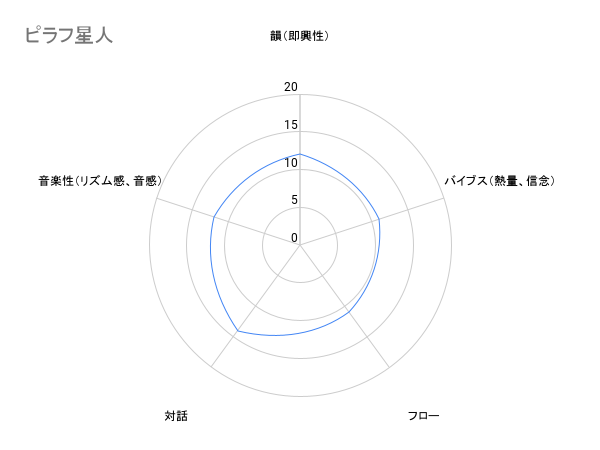 フローとは別に、正確なリズムキープであるか、正しい音程が取れているか等、音楽性を観点とした「ラップの上手さ」が評価基準となります。