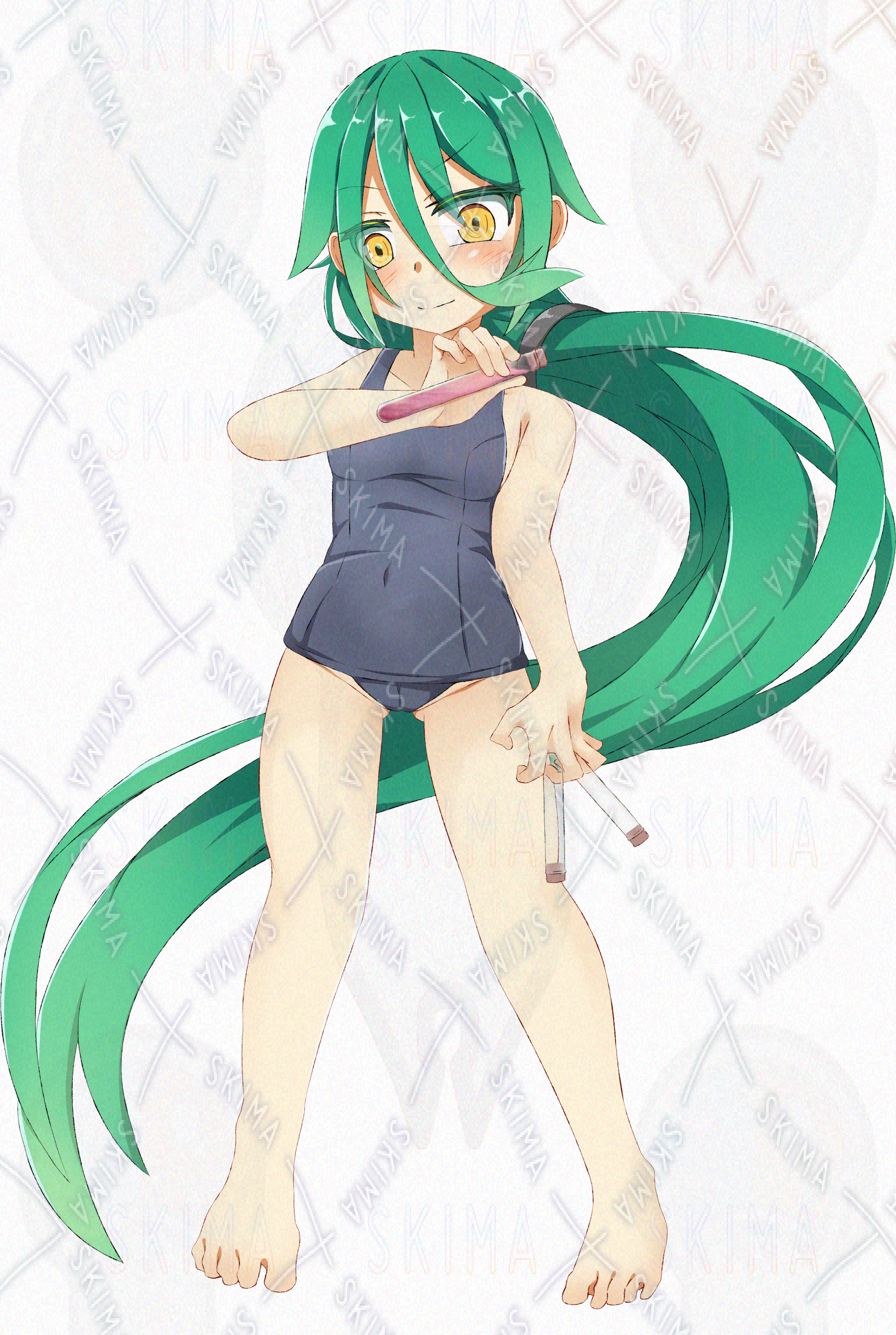 トラ柄のスリッパに帽子と着け尻尾、スク水が私服