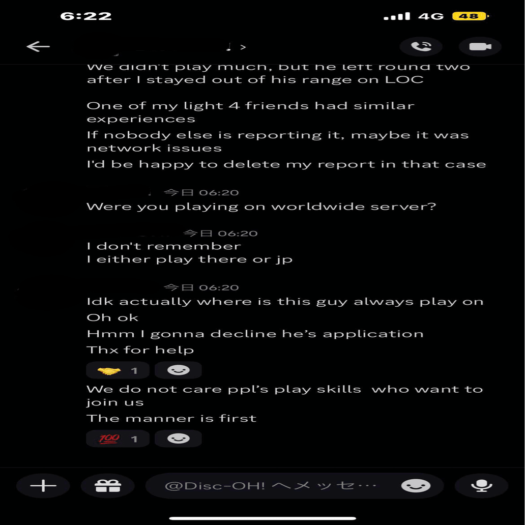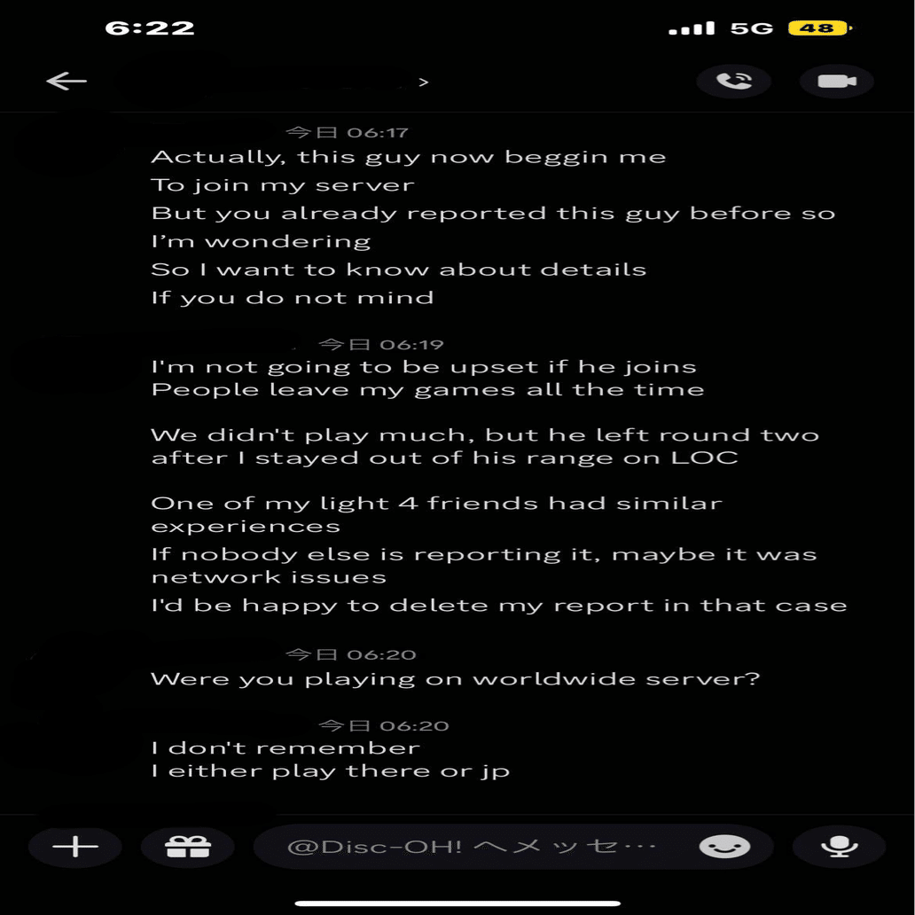 私はランクマッチ最終日、Discordサーバーで配信をしながら試合を進めていました。その中で、以下のような不可解な現象を確認しました。