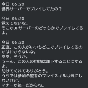 しかし、我々のかつて行ってきた海外勢の談合や一般プレーヤーの不正、マナー違反等への糾弾や排斥行為を鑑みるに、このことだけに目を瞑ることは二重規範です。