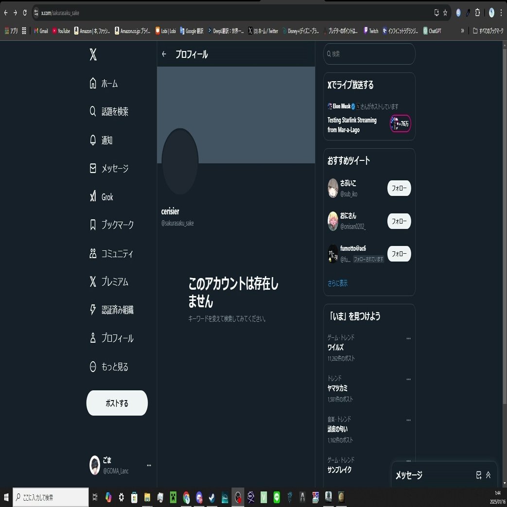 私が1月10日以降から本格的に調査活動を開始したのを受けてか、1月16日午前0時頃にCerisierのXアカウントが削除された。