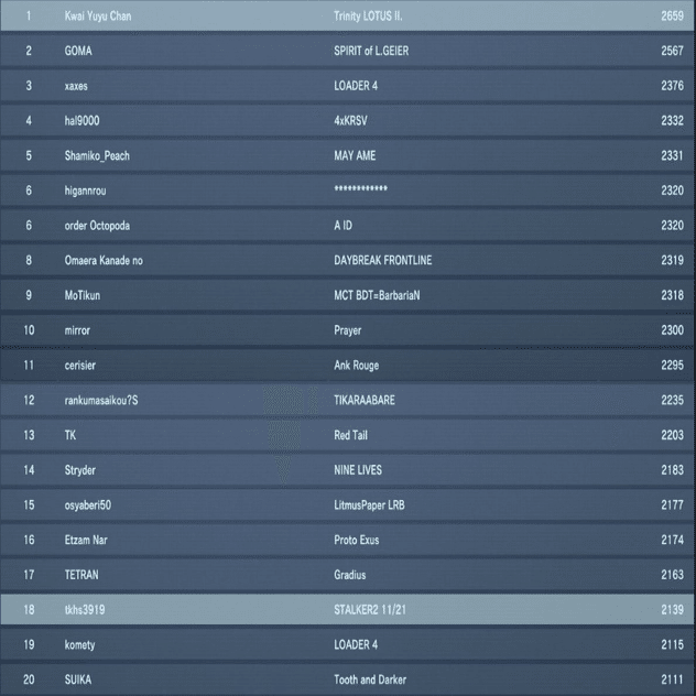 11/20日時点でのCerisierはポイント2340で4位と、ほぼTop10、アベラント称号は確定ラインでした。