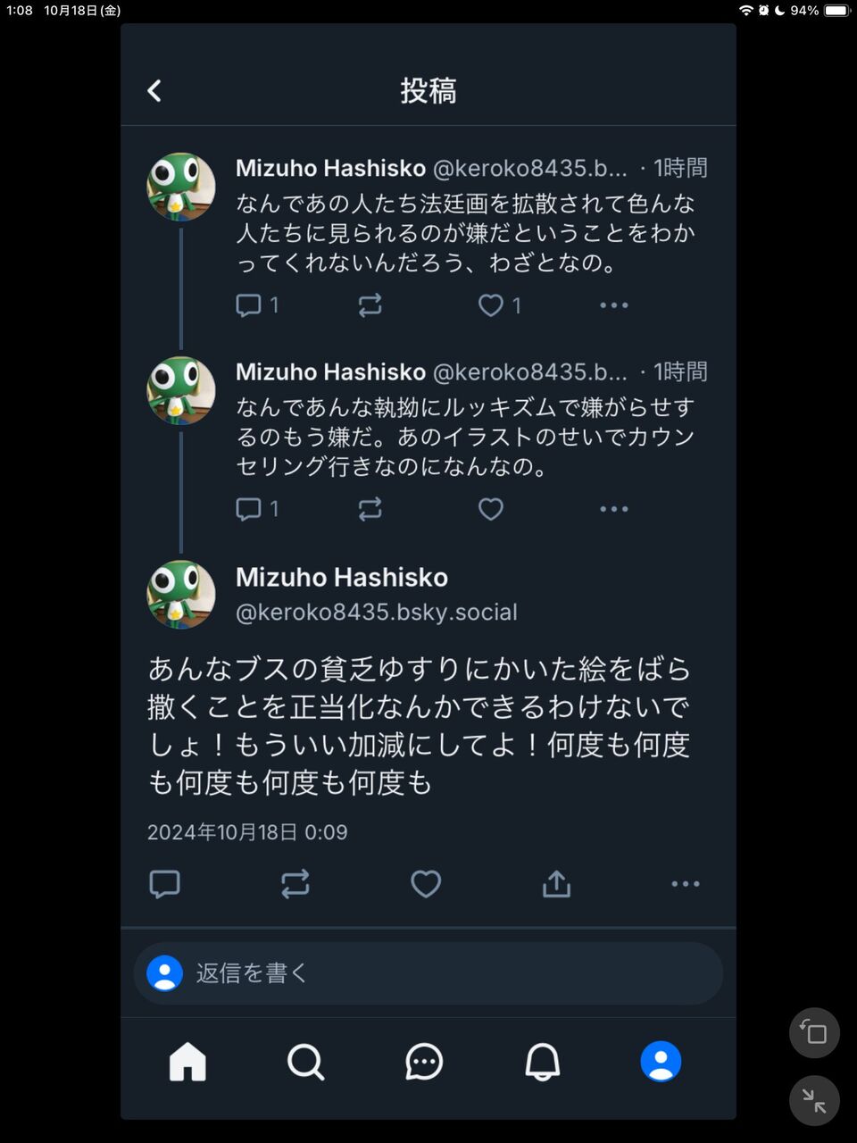 私は三浦さんをフォローしていますが、橋迫さんが大騒ぎしはじめるまで、問題になったイラストには気が付きませんでした。どちらかといえば、騒ぐことで件のイラストを拡散しているのはご本人です。