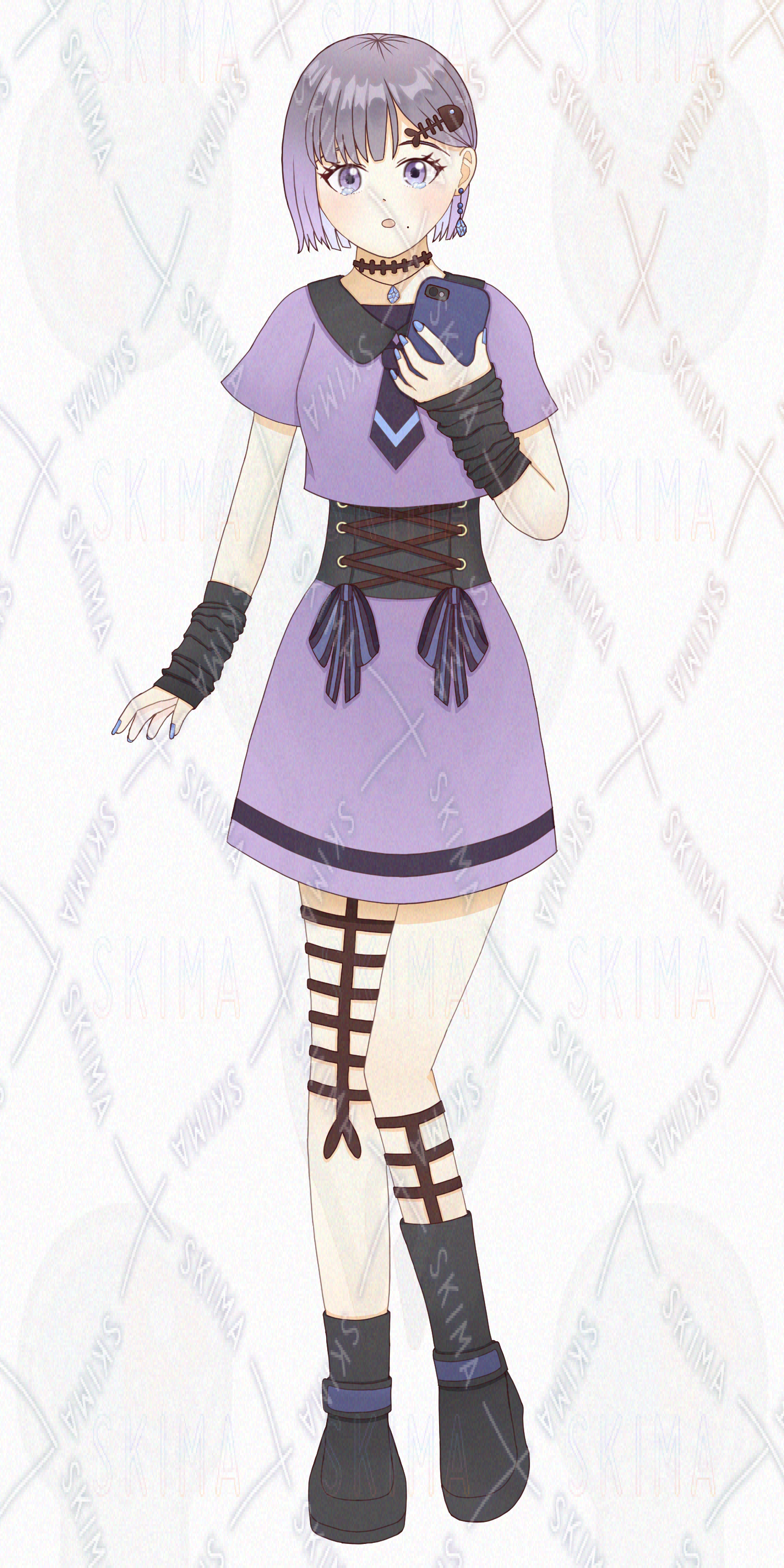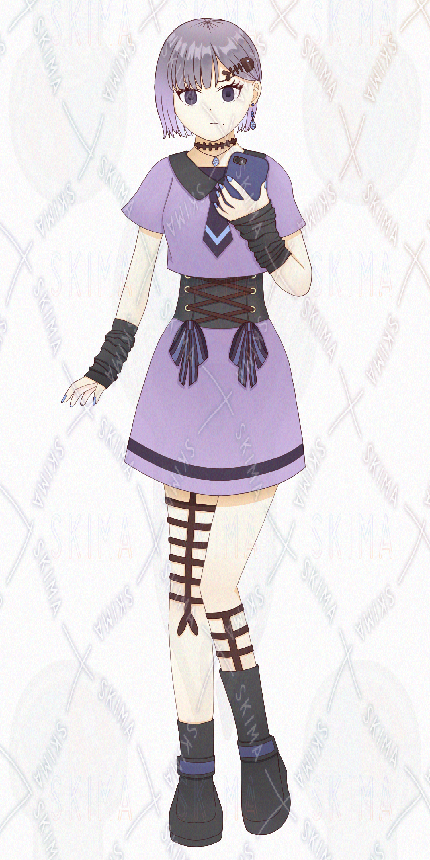 検索/私服ショートカット量産型地雷系ホクロスカート制服紫ピンク系携帯