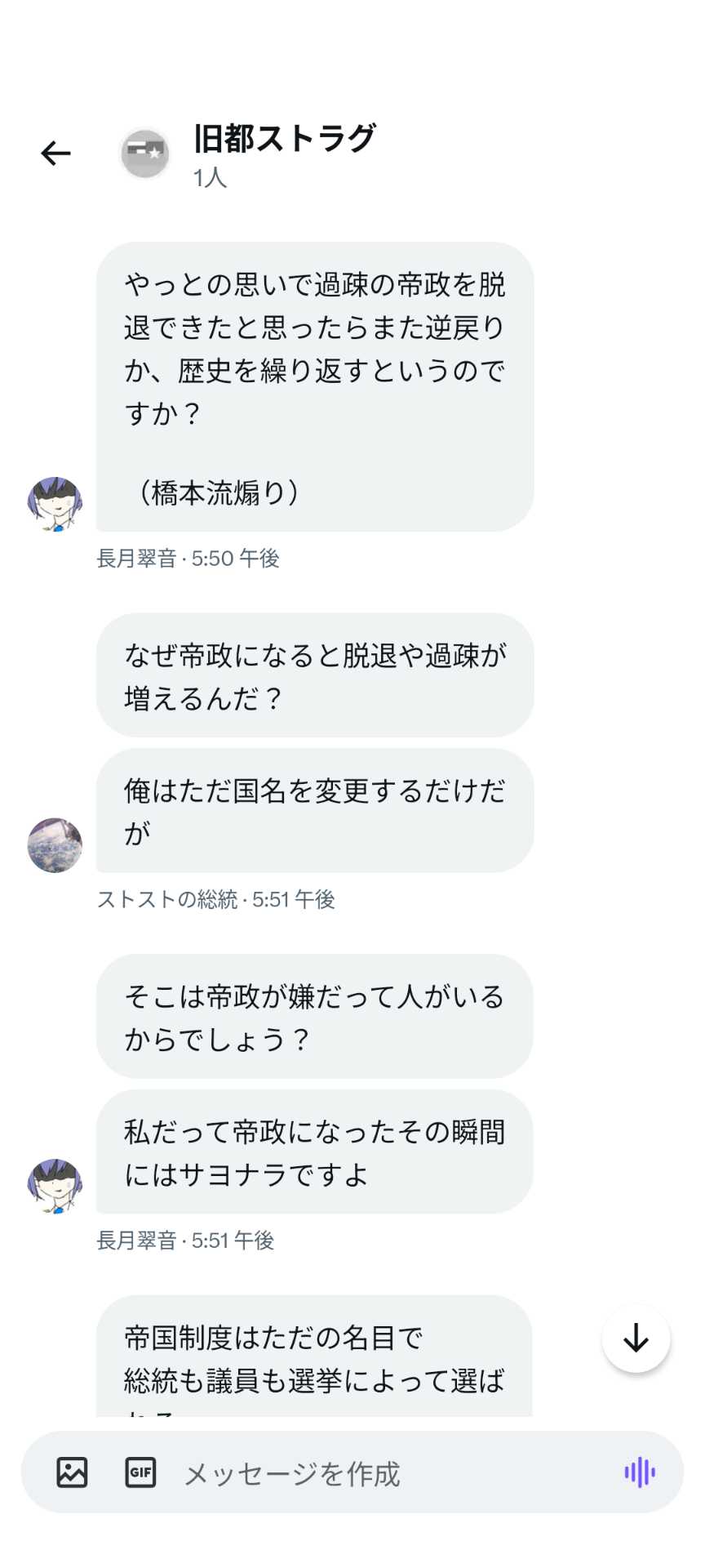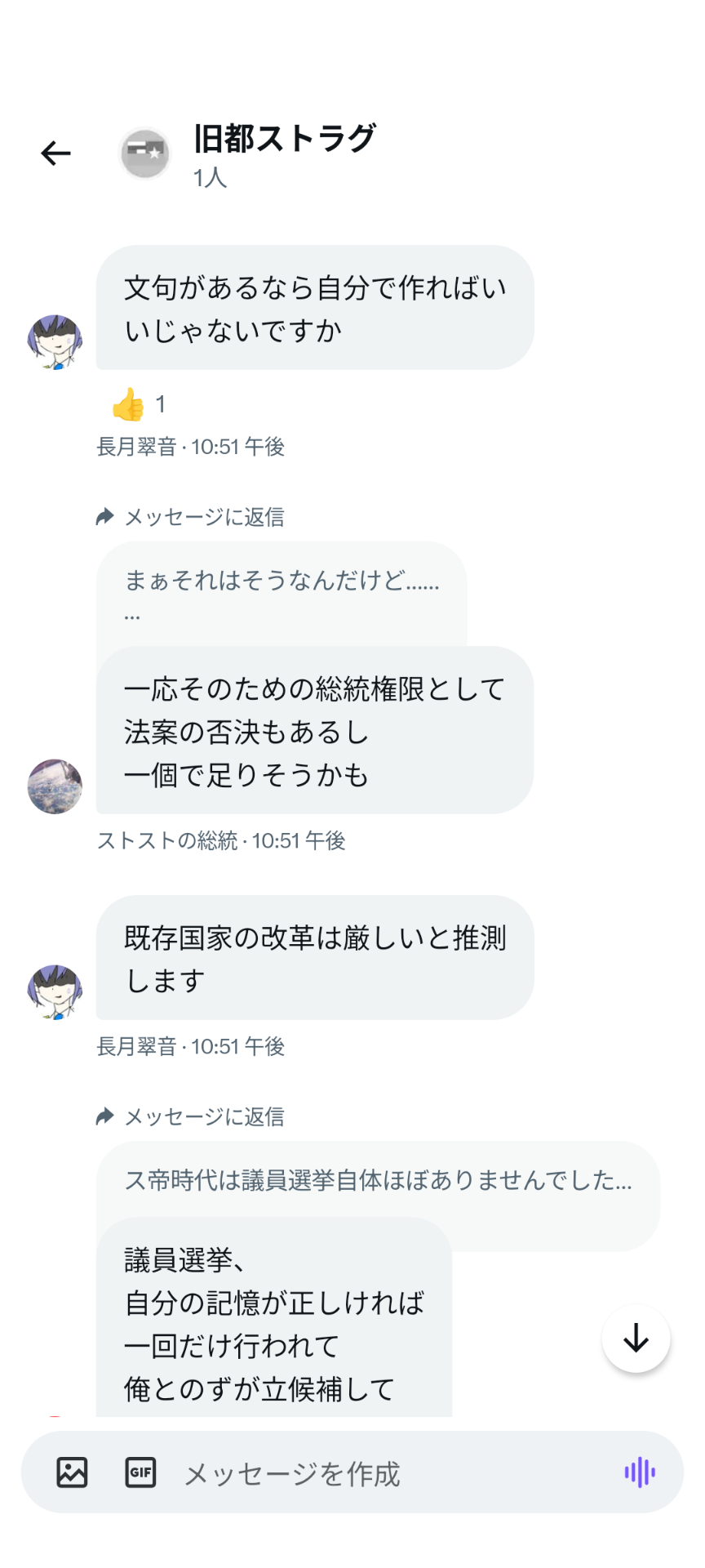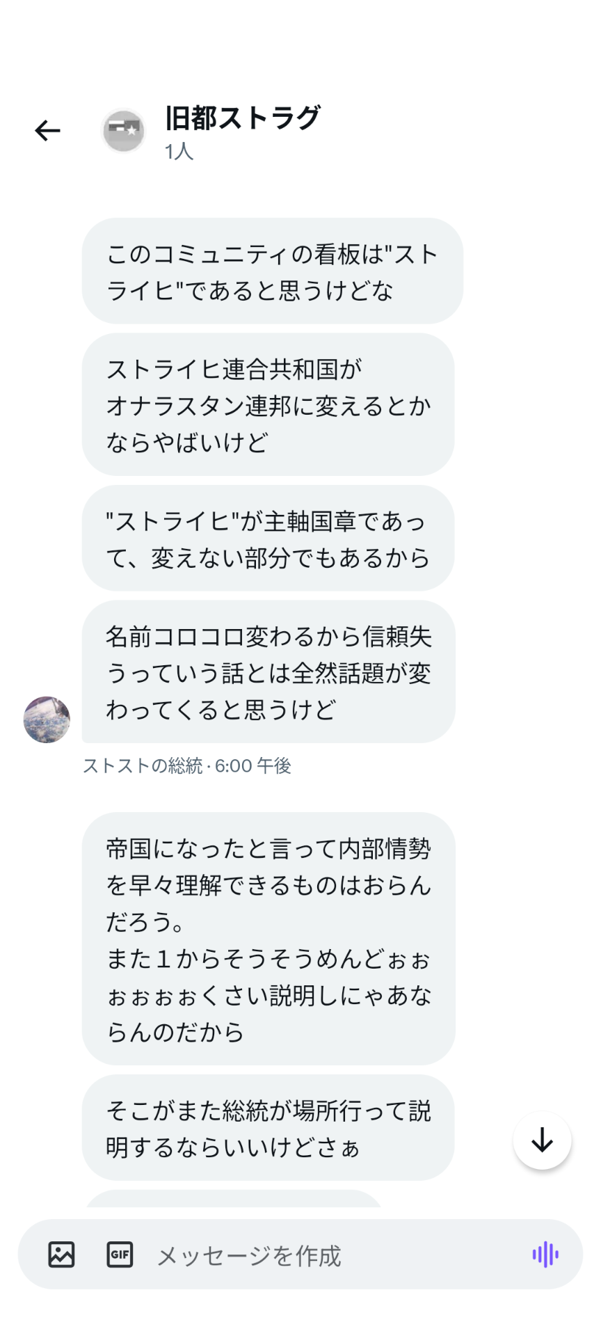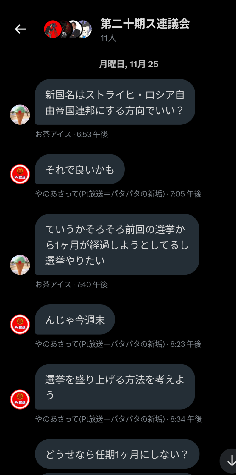 2023年10月7日、ストラナーが大統領選に出馬し、「国名をストライヒ帝国に戻す・Discord移転・大統領の任期を1ヶ月にする」という公約を出したところ、ス連期から参加したメンバーである伊吹氏が反発しちょっとした喧嘩となった。この選挙ではストラナー氏は落選したものの上記の改革を要望し続けていたため、選挙後も度々伊吹氏と喧嘩になった。しかしこの要望は結果として下記の革命に繋がり全て実現される事となる。