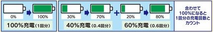充電の回数は関係なく、合計で100%充電したら1回とカウントします。