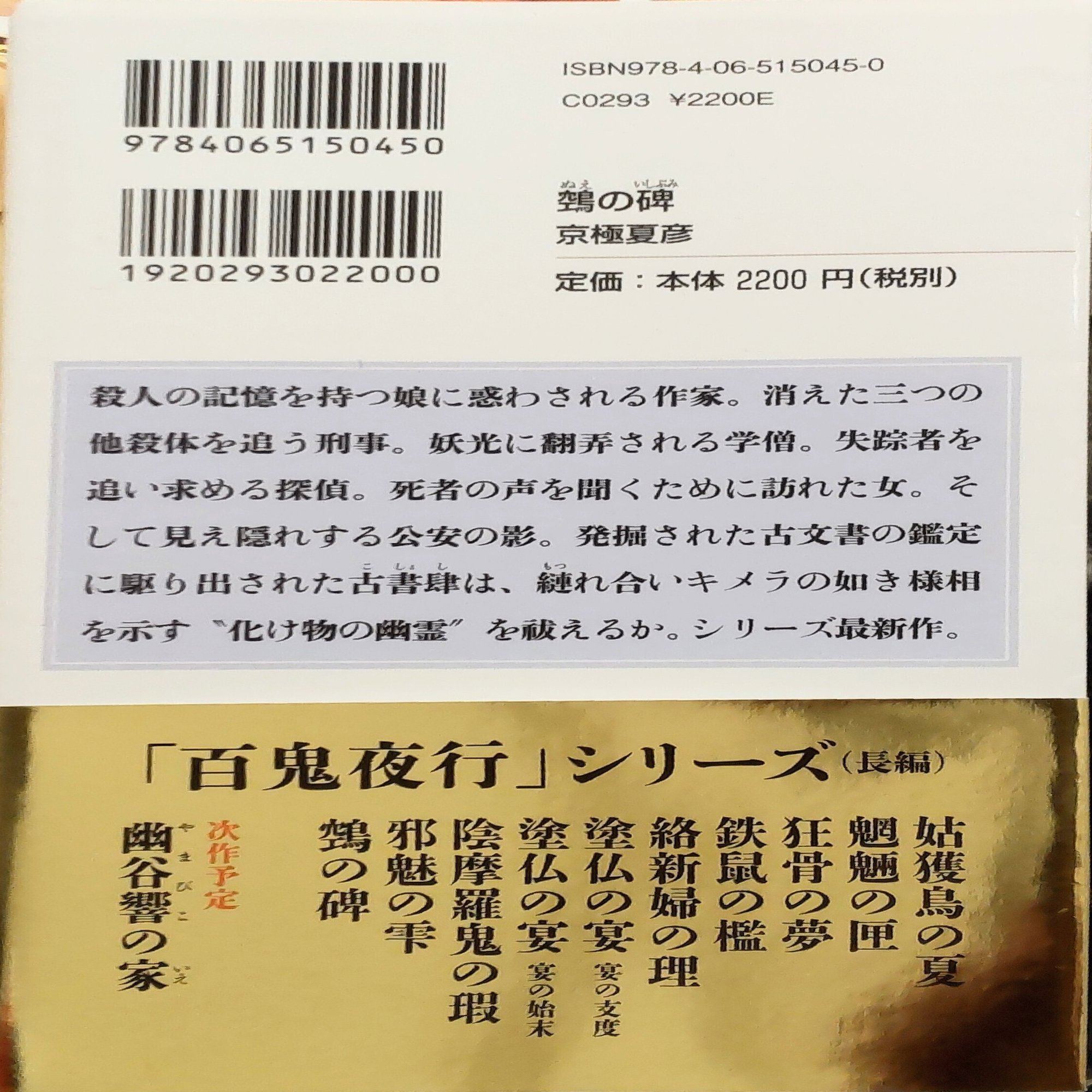 2023年9月に京極夏彦による新作『鵼の碑(ぬえのいしぶみ)』が発売された。