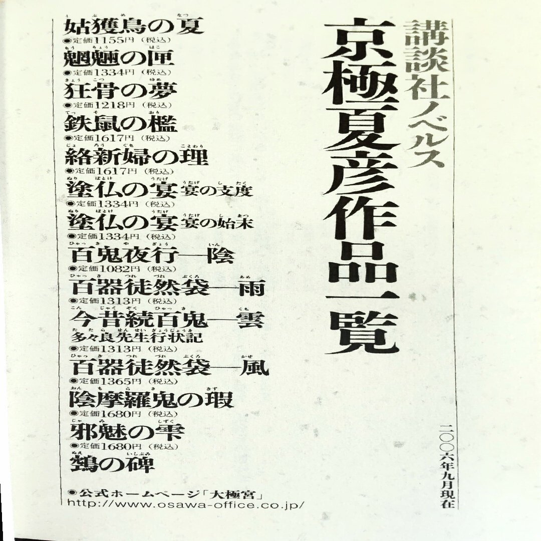 この百鬼夜行シリーズには恒例だが、本のカバーなどには次回作のタイトルが書いてある。
