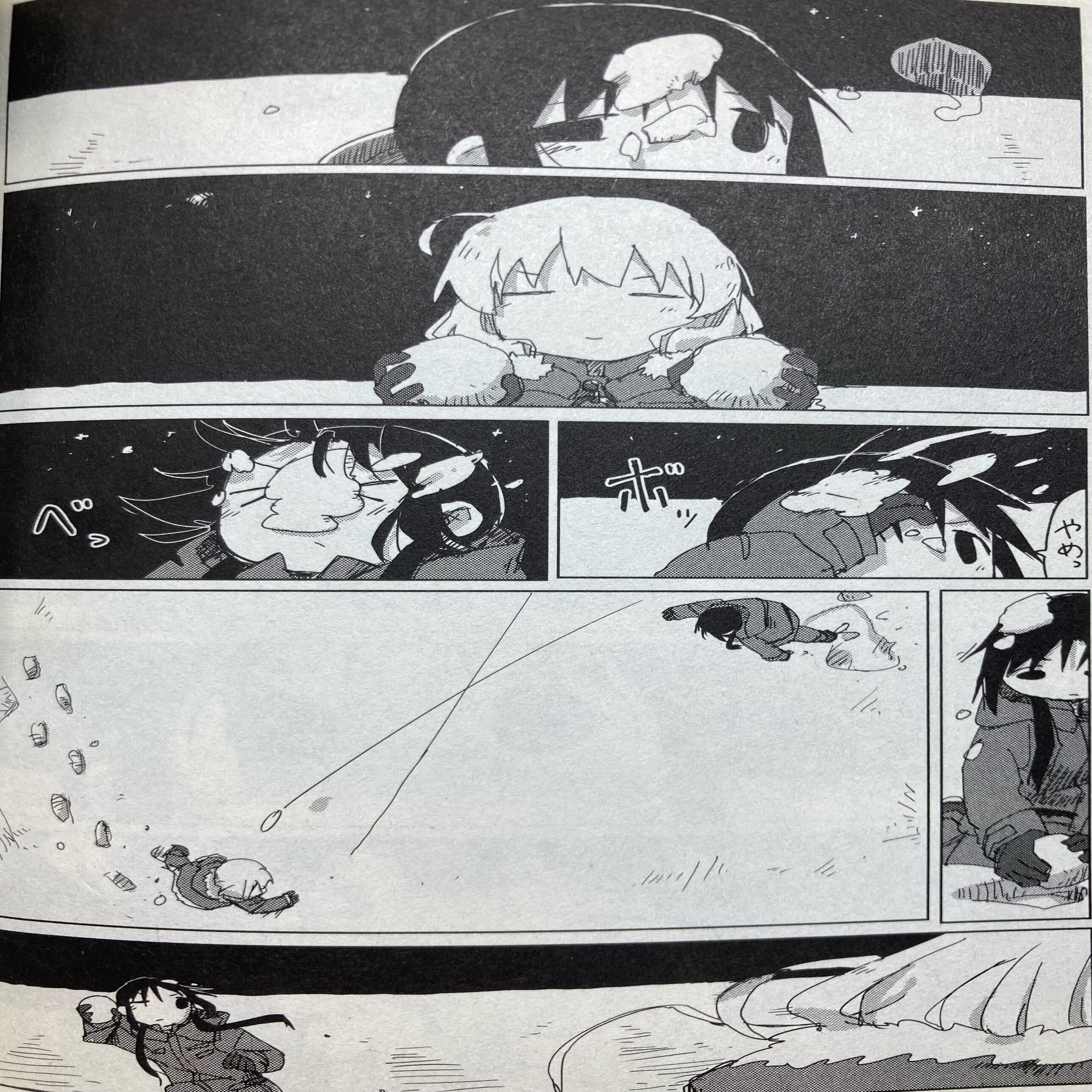 彼女達の雪合戦も同様であるどころか、無駄に体力を消耗するという現実に鑑みれば、有用性を追求する目的に大いに反するものとすら捉えられます。このように彼女達の無目的、無根拠さを恐れずその中に積極的に身を投じる態度が、遊びを通じて象徴的に顕わになっているのです。
