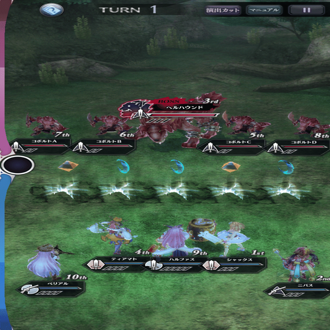 また、オートの判断に置いても、独特な仕様が存在しており、たとえば、『2回まで攻撃無効のバリアを貼る』という効果ならば、最も体力が低いユニットに対して使用されるが、『攻撃力を強化し、2回まで攻撃無効のバリアを貼る』効果ならば、それは攻撃力に対するバフの効果なので、最も攻撃力が高いユニットを対象にしたり、ということがある。