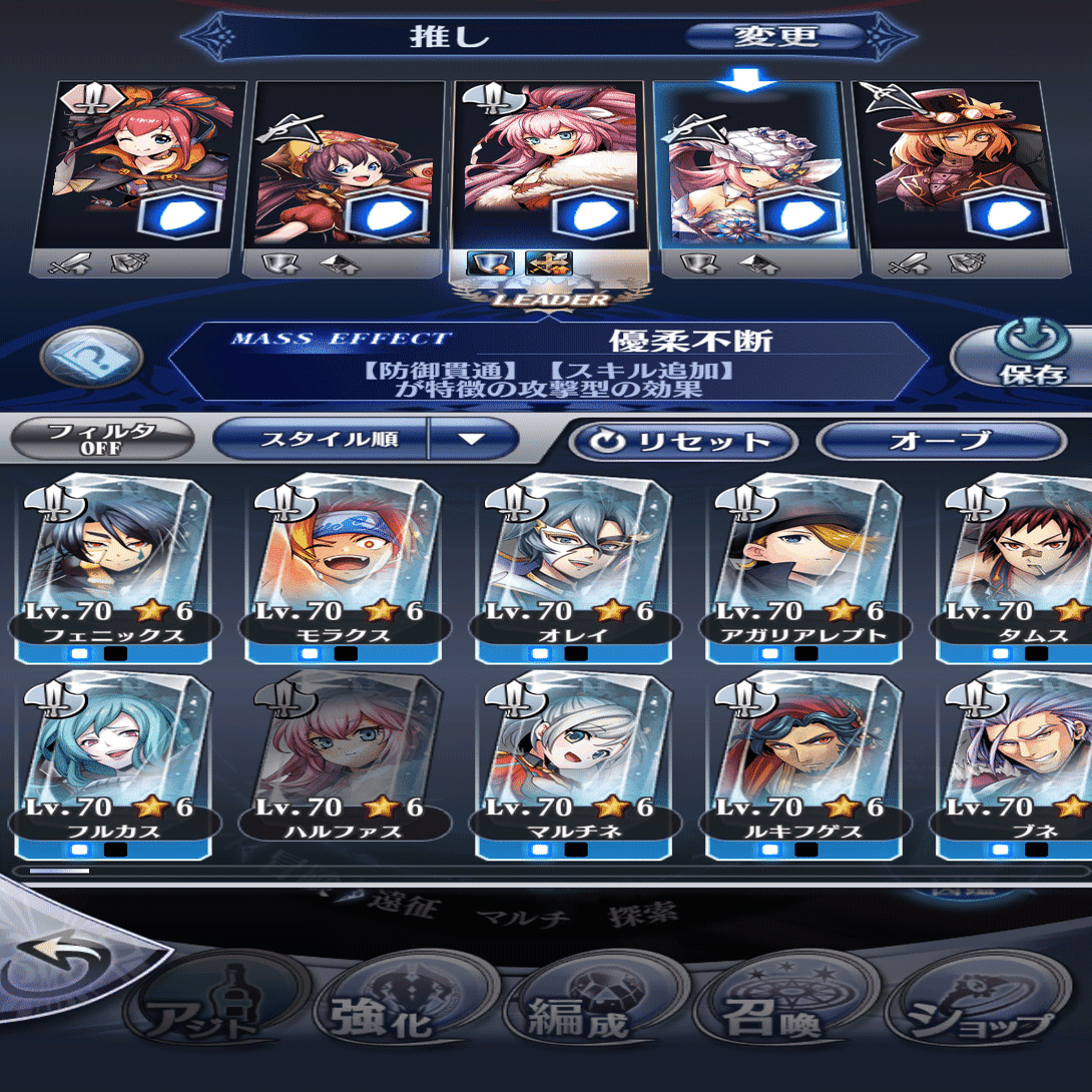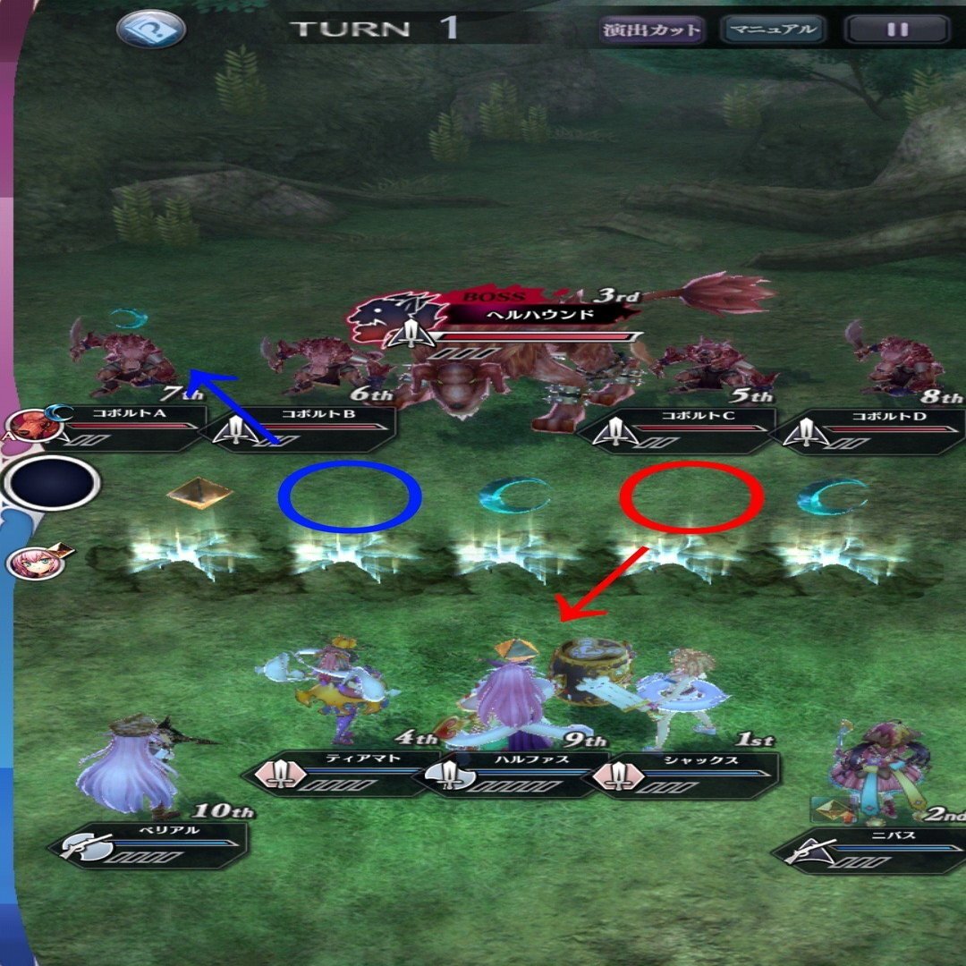 当然ながら、この攻撃は敵の後衛に、この攻撃は敵の前衛に与えたい、というようなことがあるのであって、それを編成の時から、ある程度仕込むことができるようになっているのだ。