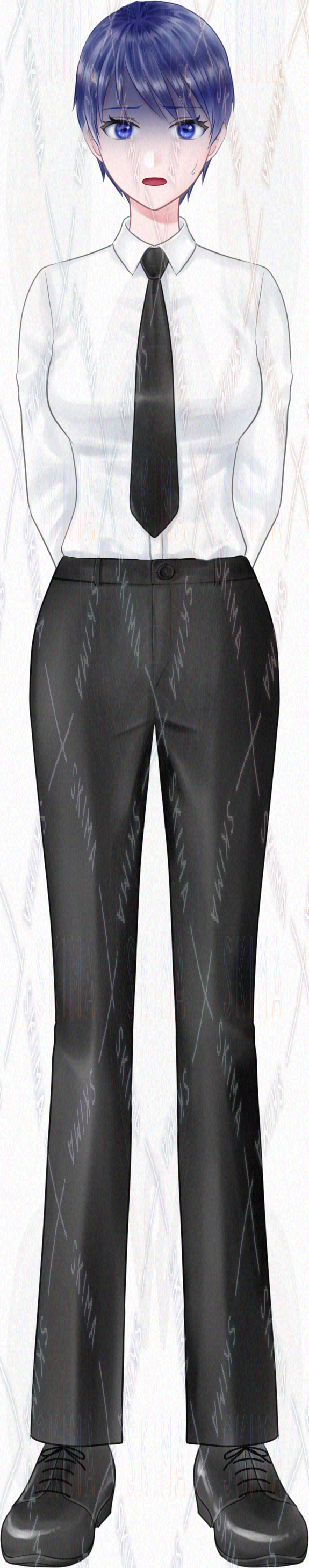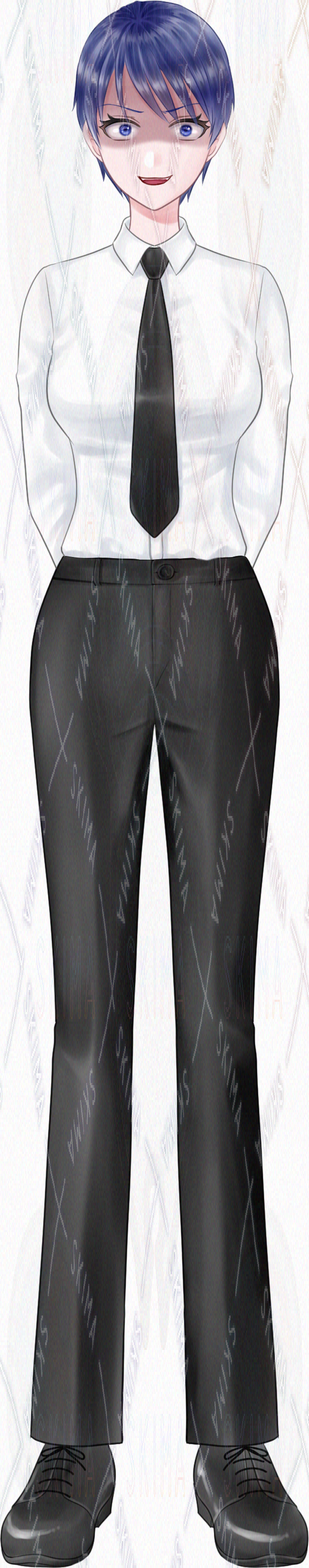 【検索用ワード:ボーイッシュ スーツ スラックス 少女 女性 ショートカット ネクタイ 黒 凛々しい 黒髪 シャツ