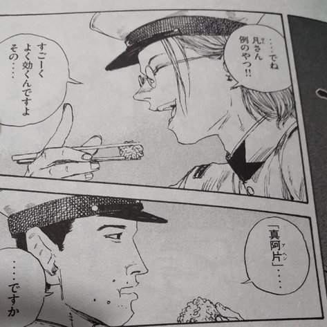 主人公(勇)のアヘン精製技術は天性のものがあり、作られたアヘンは他とは比べ物にならない極上なものです。作中では「真阿片(アヘン)」と呼ばれています。