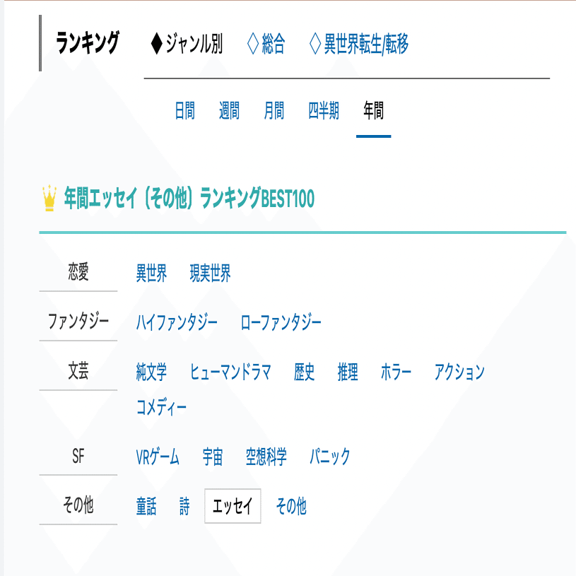 なろう系以外のWeb小説作品が評価される手段があるとするのならば、読む前に「面白さの保証」が(読者の好みに合わせて)完璧にされるシステムや、選別する手間すらかけたくないユーザー向けの「レコメンドシステム」の導入くらいであり、どちらも非現実的である。