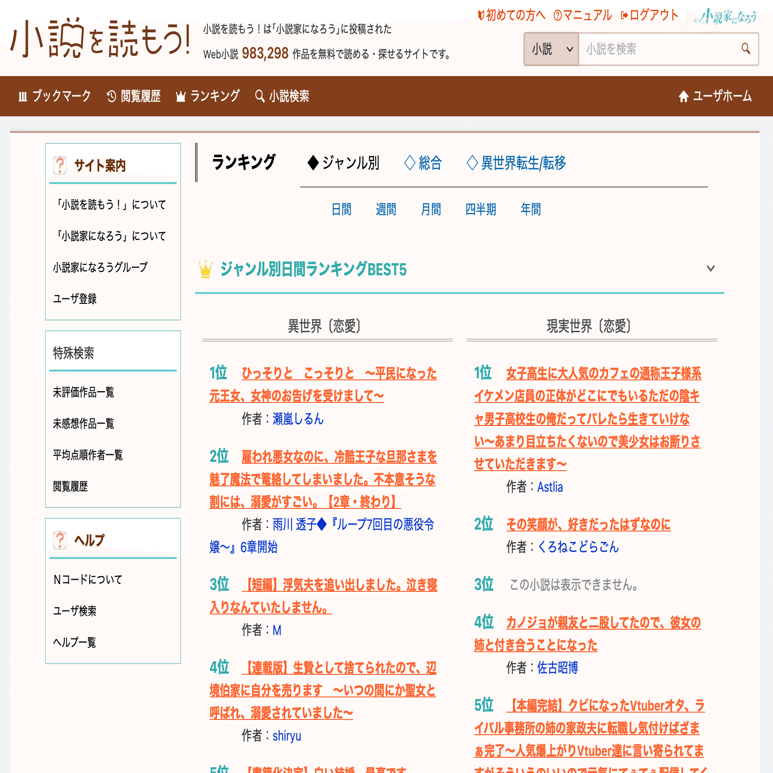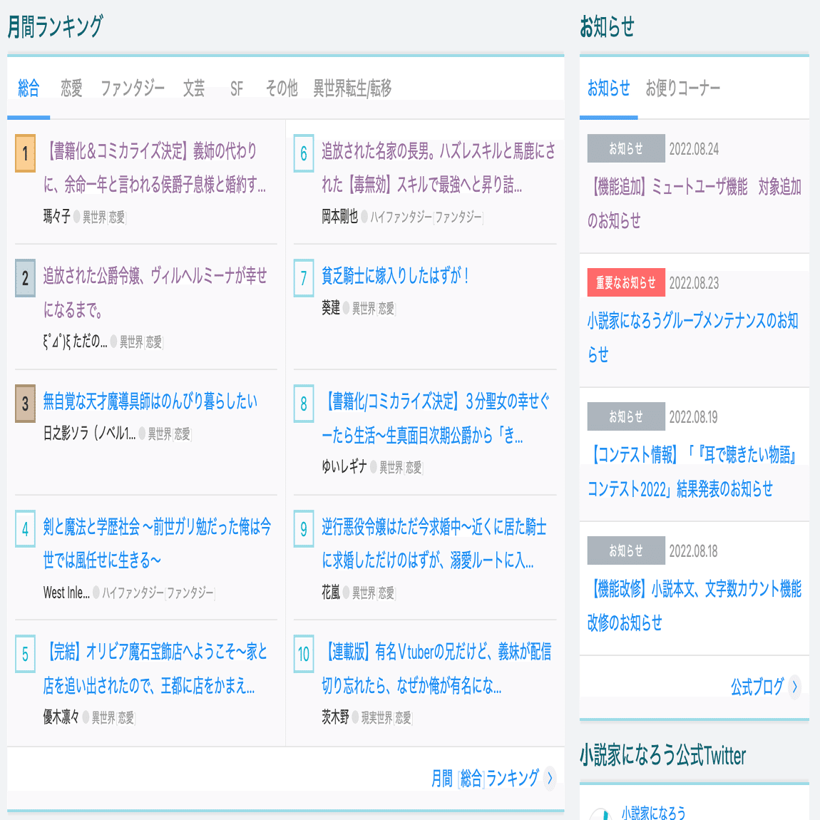 逆になろうは恋愛専門サイトになってしまいました。