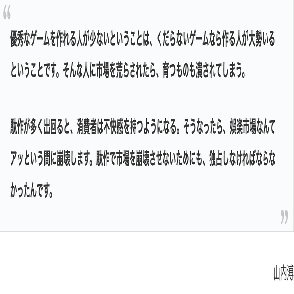 駄作が消費者の期待を裏切り続けて、業界全体のイメージを損ねることで、他の娯楽に消費者が流れてしまうためだ。
