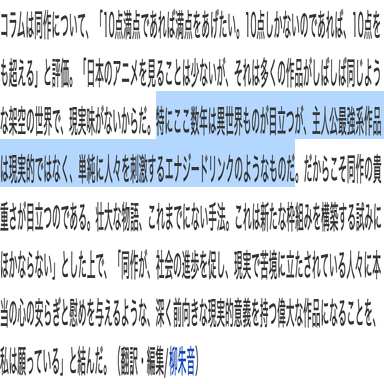 小説投稿サイトという原点からアングラ、かつ歪で閉鎖されている環境の中で大ヒットしてきちんと売れた作品があったとしても、それがそのまま一般大衆に受け入れられるかどうかは全くもって別の話であり、Web小説とは根源的な部分から、世間一般の創作に対する価値基準と乖離しがちなコンテンツなのである。