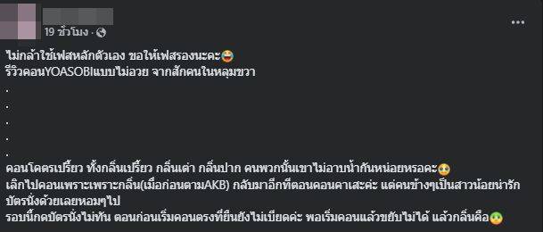 สาวรีวิวคอนเสิร์ต YOASOBI แบบไม่อวย จากผู้ชมเปลี่ยนเป็นผู้ประสบภัยแทน หลังเจอทั้งกลิ่นเปรี้ยว กลิ่นเต่า กลิ่นปาก จนทำให้เสียอรรถรสชมคอนฯ
