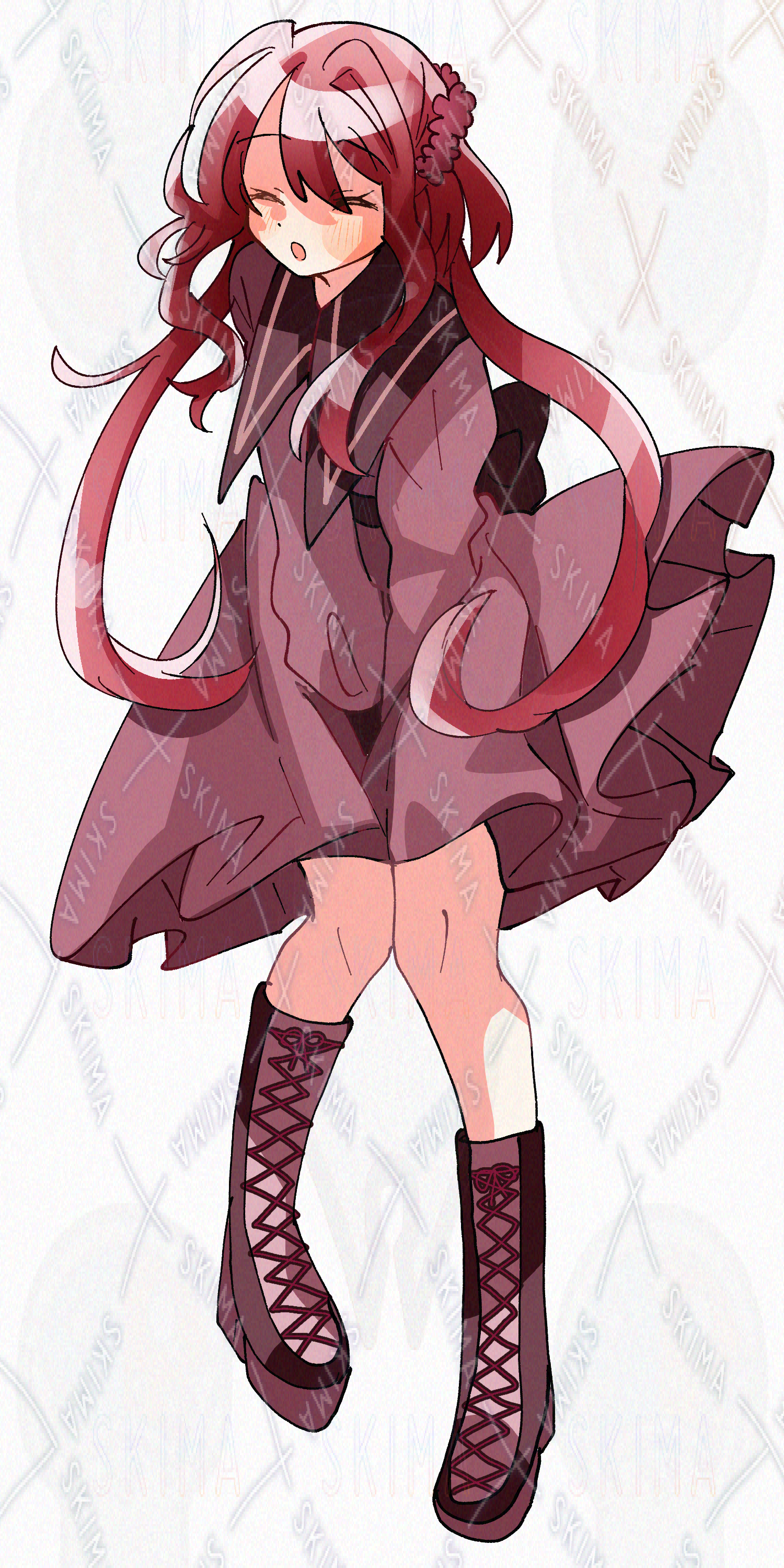 赤い髪の長い女の子【差分6種】