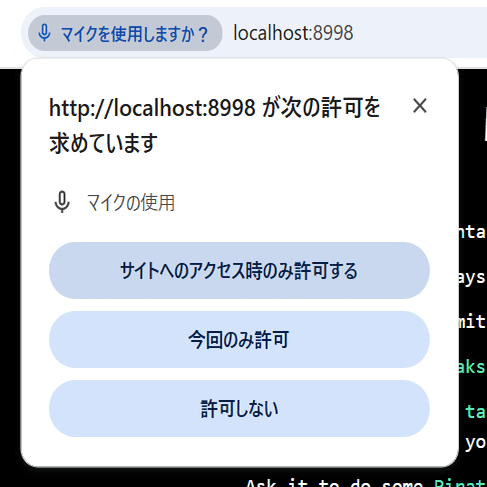 Connetボタンを押下すると、「マイクを使用しますか?」と尋ねてくるので、許可します。