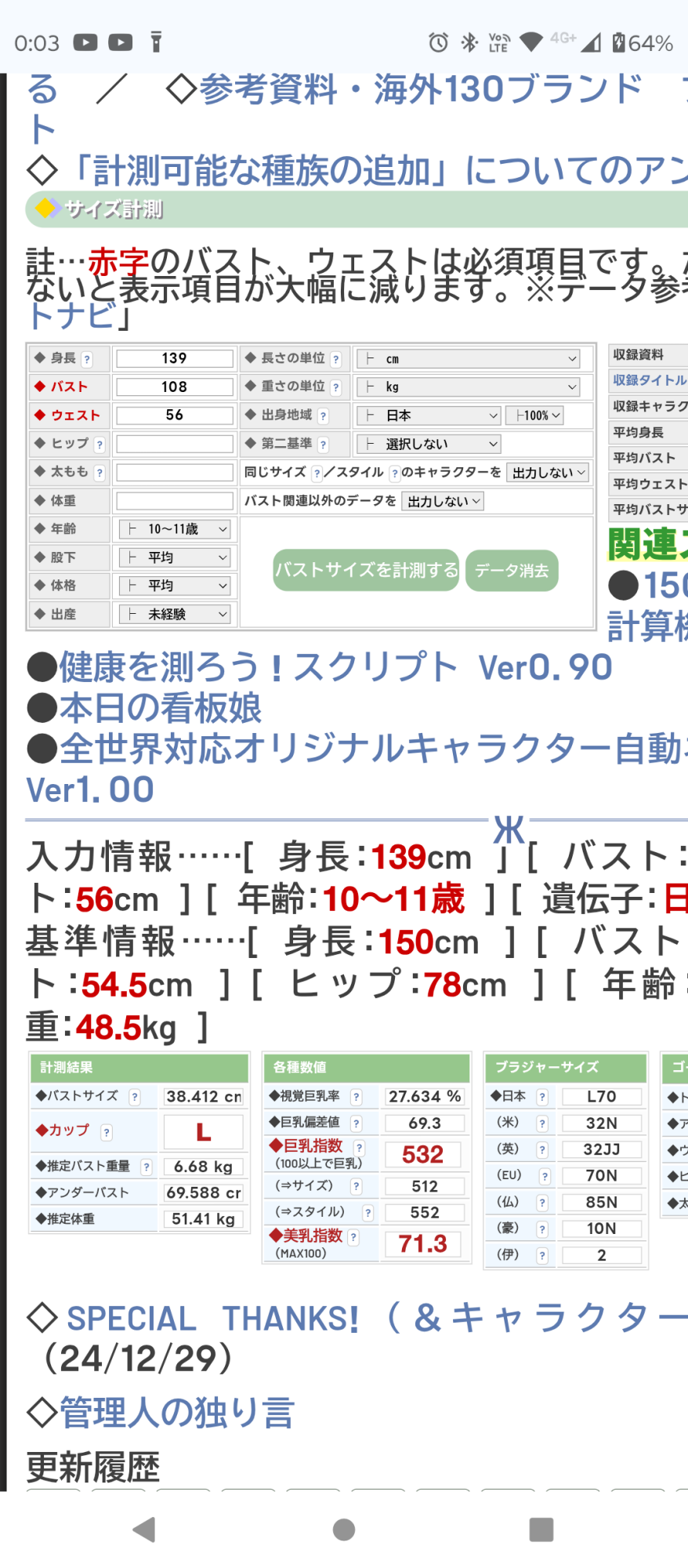 覚醒都市DiX 暇つぶしツール 女性キャラクターバストサイズ計測スクリプトkakuseix.comこれ推定の乳の重量とかいろいろ見れておもろい
