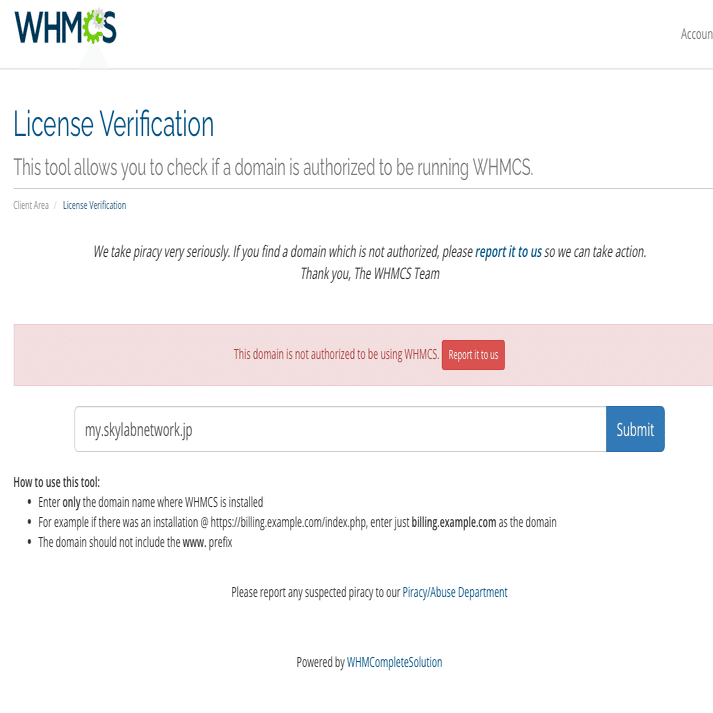 さらには、WHCMSというサーバー管理ソフトの割れライセンス(違法ダウンロードのこと)をしているという情報がありました。