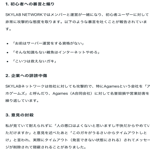 SKYLAB NETWORKの運営陣の会話の様子を見てみると、わいせつな発言や下ネタ、暴言や個人情報、住所晒しなど、密に絶えない無法地帯のような形になっています。