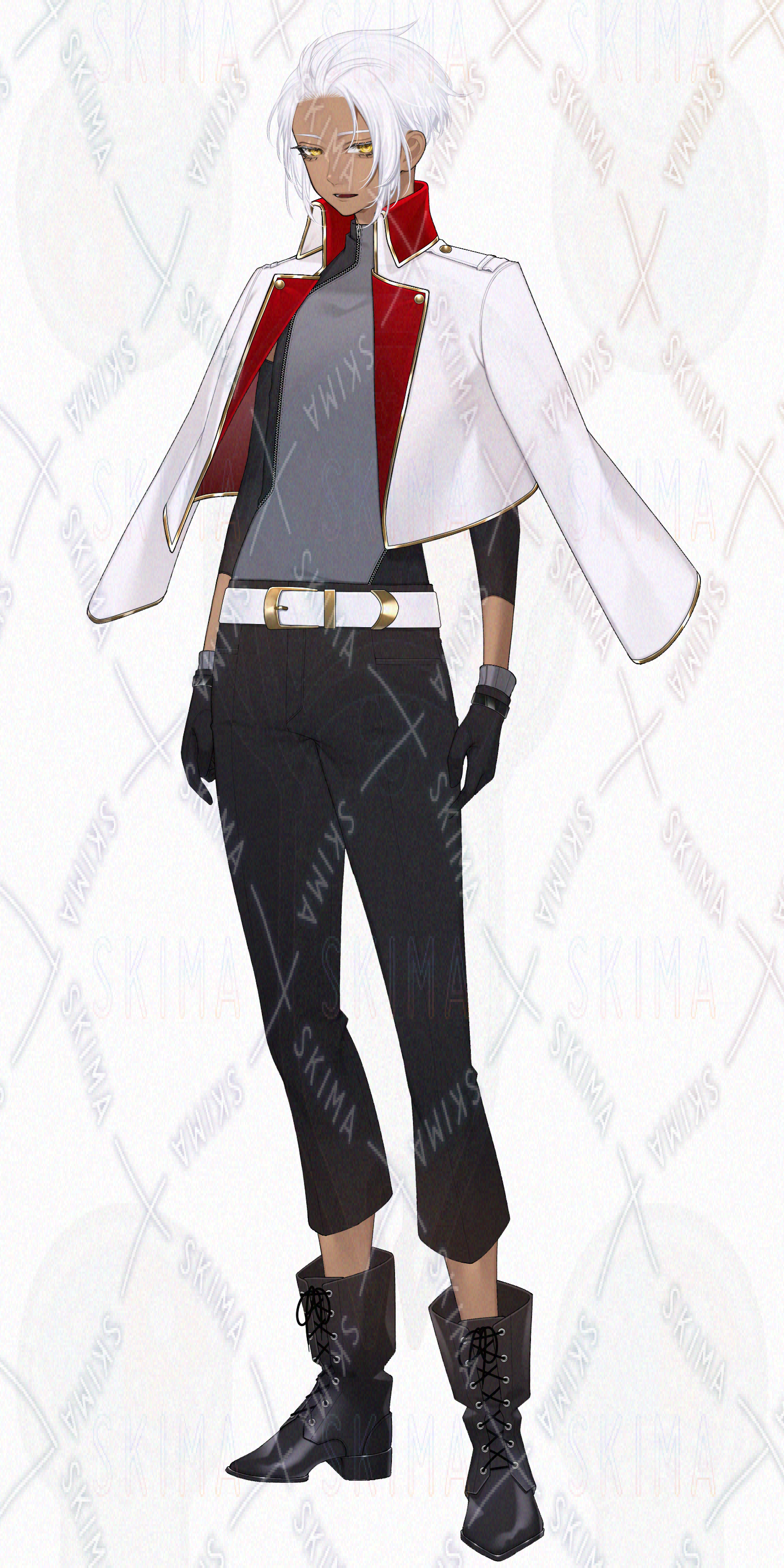 男性/銀髪/金眼/褐色肌