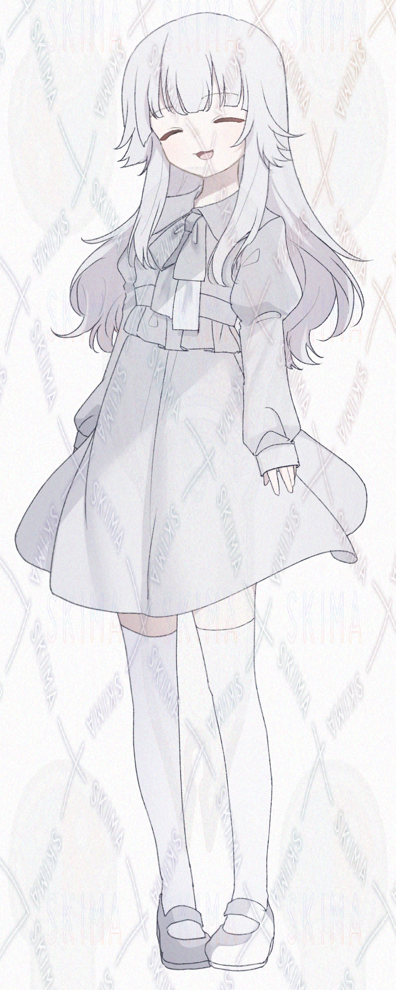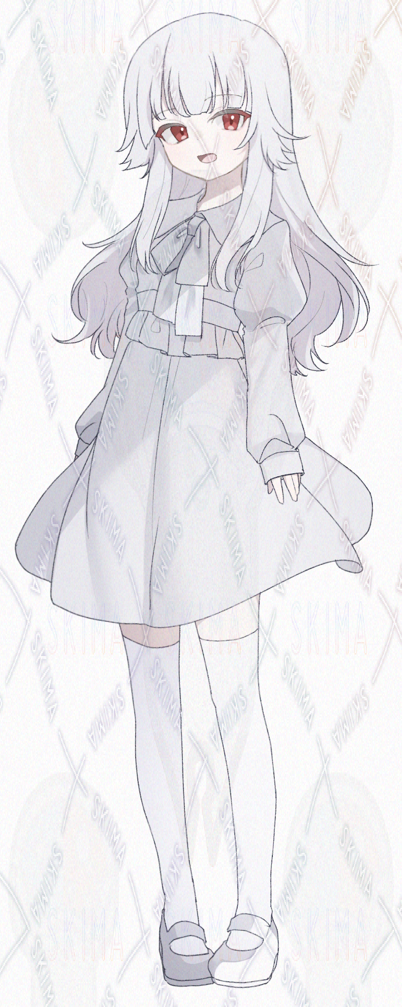 赤い眼、白髪、白ワンピースの女の子です。キャラ設定はご自由に。