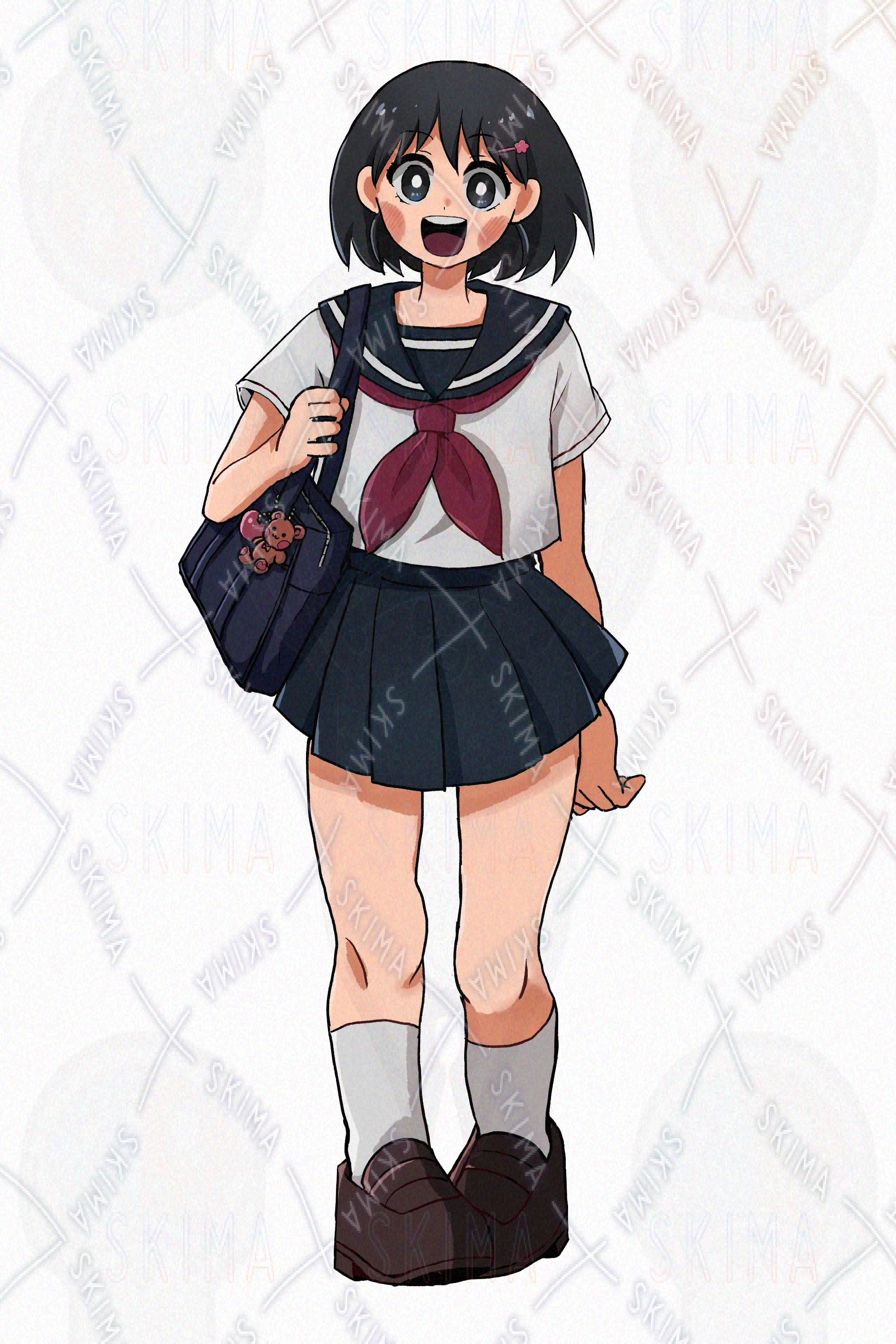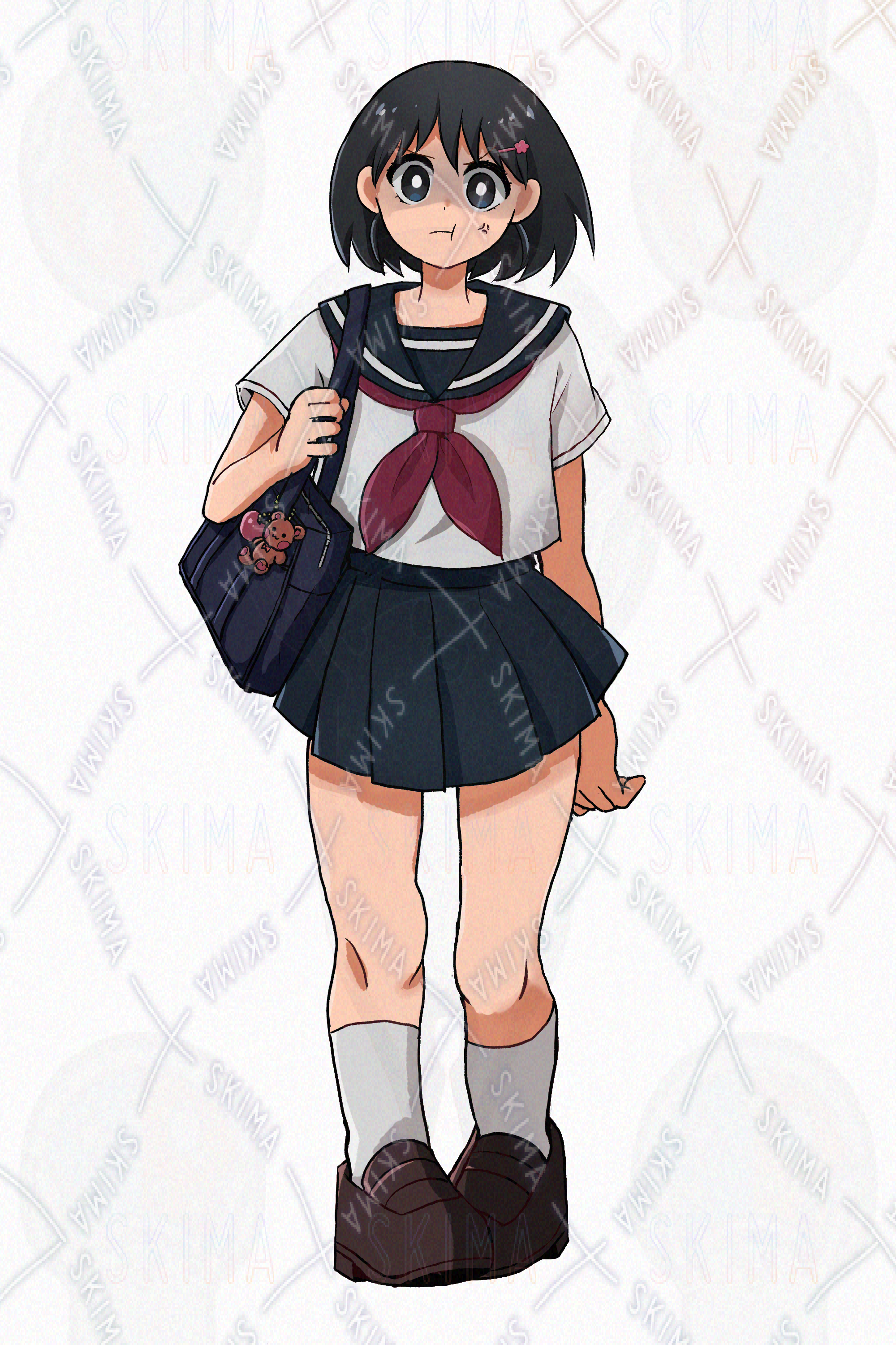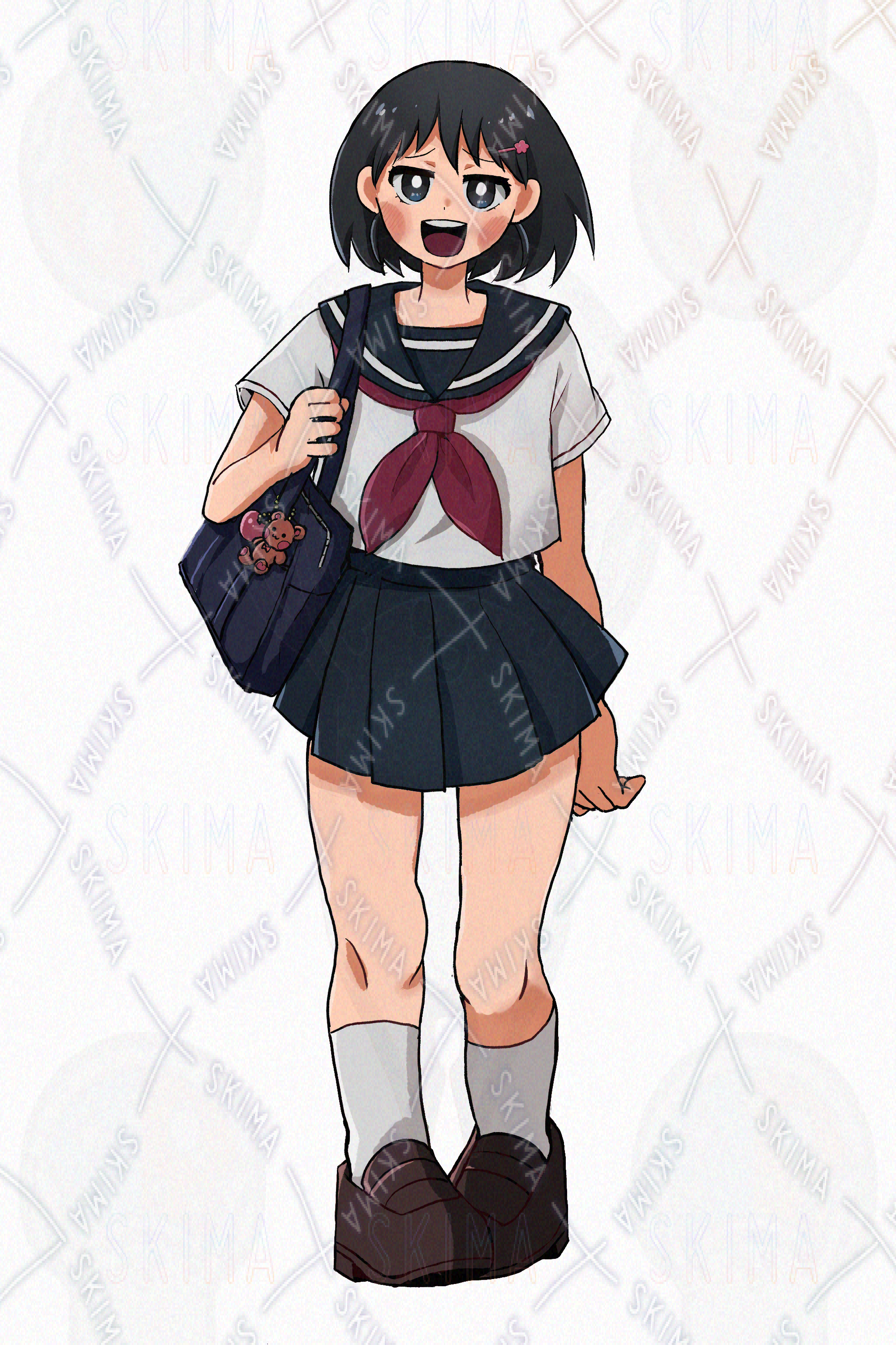 女の子/夏服/制服/黒髪/ヘアピン/スクールバック
