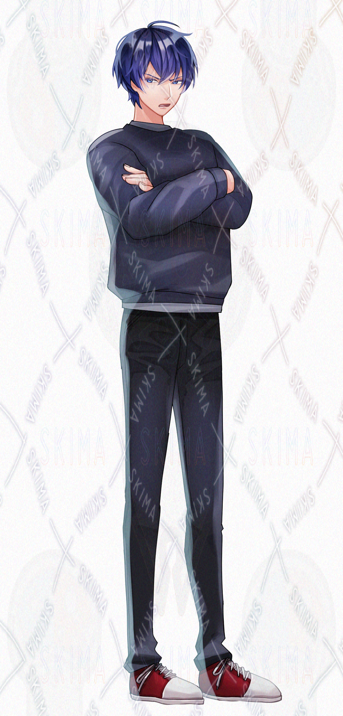 スニーカーを履いた青髪の男性【全身・表情差分7種】