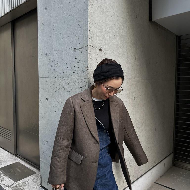 オーバーサイズのシャツを着て