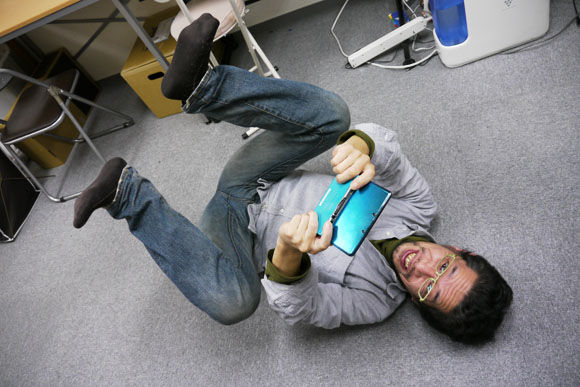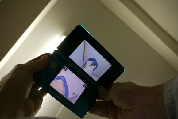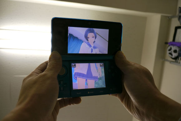 ニンテンドー3DSを右に移動させると画面内の部屋も右に移動し、下から覗きこむようにニンテンドー3DSを