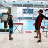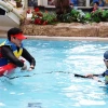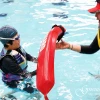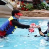 아쿠아월드에서 아이가 수상안전교육을 받고 있으니