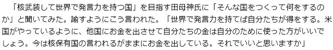 彼は「核武装すれば世界で発言力が増す」と思っているのです。