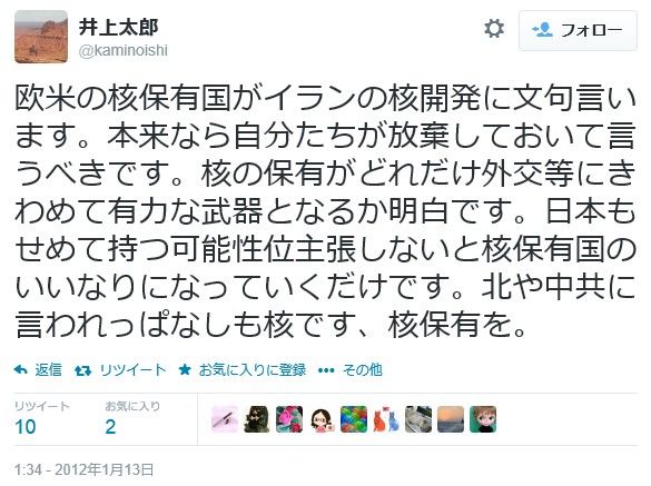 (↑核保有を主張する井上太郎)