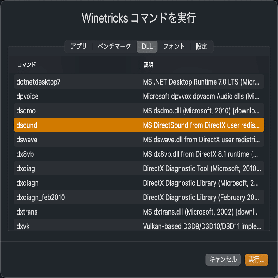 ・DLLから「dsound」を選択して実行します