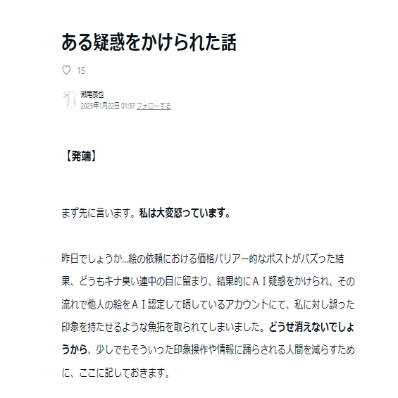 もし本当にAIを使用していないなら誠に申し訳ないことをいたしました
