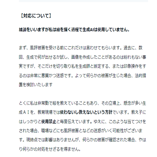 「私はAIを利用していない」と声明を発表