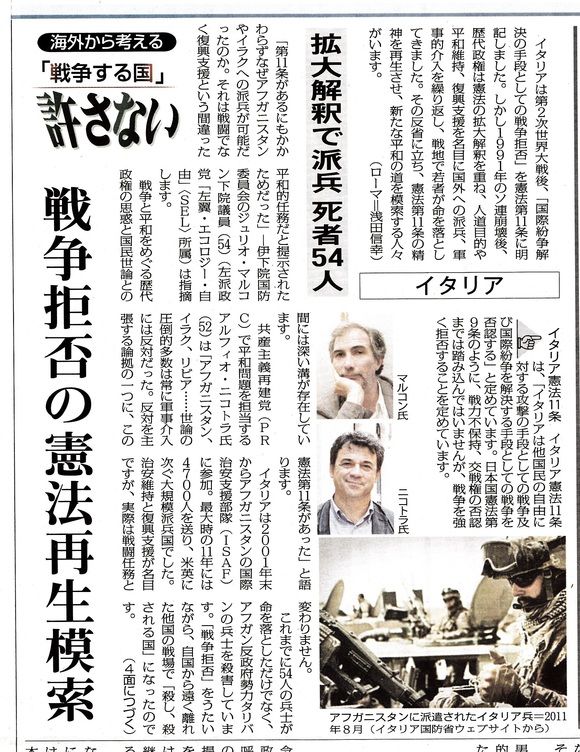 ↑イタリアでは憲法で戦争を放棄しておきながらアフガンで戦死者を出している(参照)