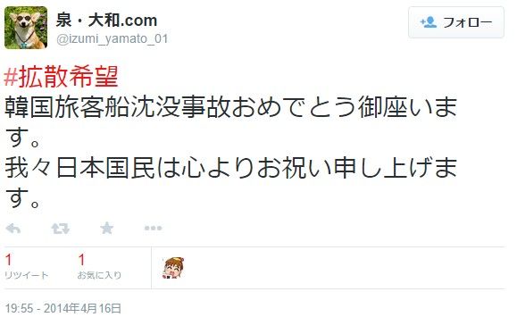 「俺たちは韓国の船沈没をお祝いする」