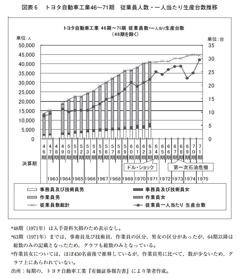 法政大学のHPに掲載されているこの研究によれば、トヨタ自身が1963年から1975年までの約10年間だけで、従業員一人当たりの生産台数を3倍にも伸ばしています。「(現在の)トヨタの生産能力の半分」が問題視されるのであれば、かつてのトヨタ自身もダメダメ会社になってしまいます。生産能力が世界一、二を争うトヨタの半分程度しかなくても何も驚くことには当たらず、現代自動車社員やシステムに問題があるという証明にはなりません。