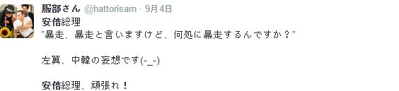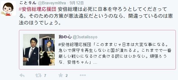 (※最後の25mom-snsnのツイートは英語が下手すぎてわかりづらいけど、「安倍内閣支持率急落」というニュースに対し、「このニュースは根拠が無さすぎて信じられない。安倍総理の内閣支持率は上がる(と私は信じる)」と言っていると思われる)