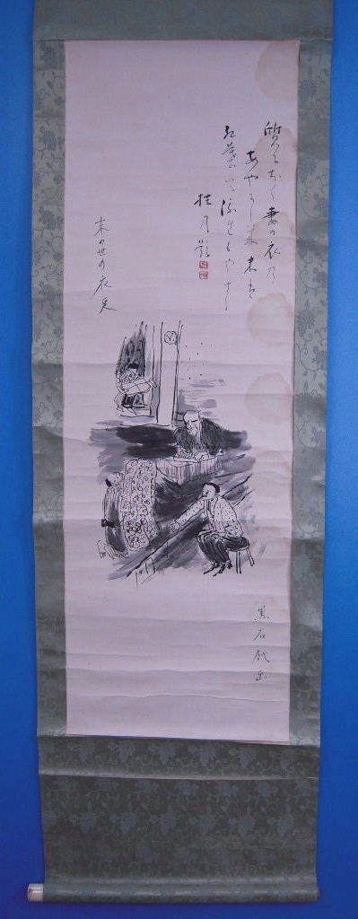 「大泉黒石画 大町桂月賛 末の世の衣更 質におく妻の衣のあやにしき末は紅葉と流れもやする 軸装」珍しい品!
