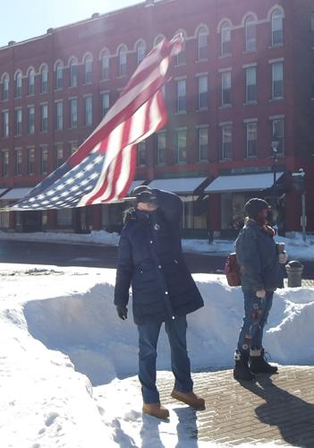 “We are standing here because nobody in Washington is standing up,” said Cindy Tyler, who was waving the largest of the flags among the group. “We’re standing here because this is our First Amendment right. We’re here to make sure that people know we are not going to sit down. The north country is not a bunch of pushovers. We deserve to be heard just as much as everybody else in this country. So, we are standing here and proving that the American right to protest is still strong.”